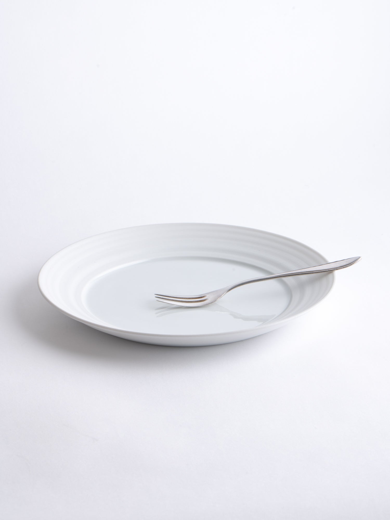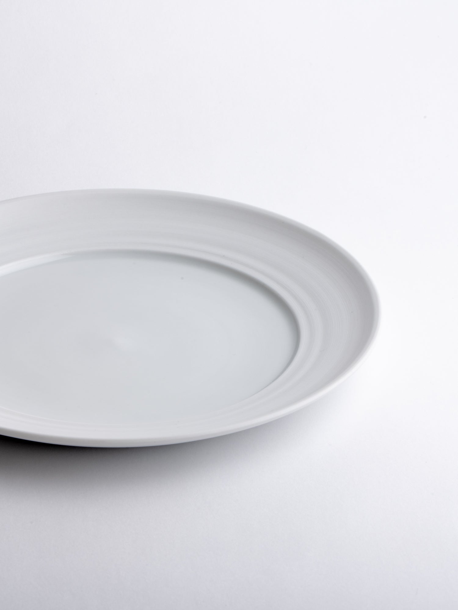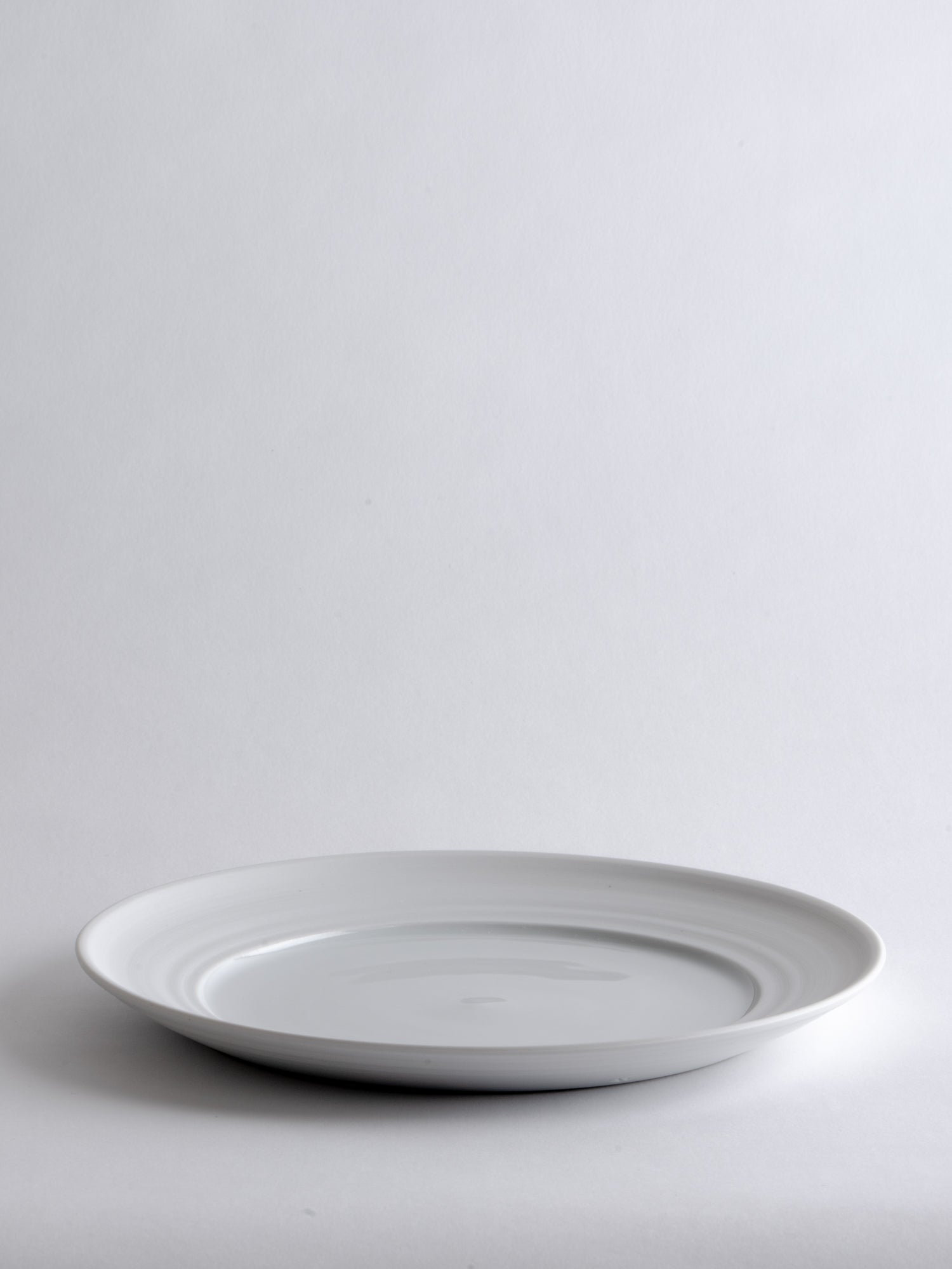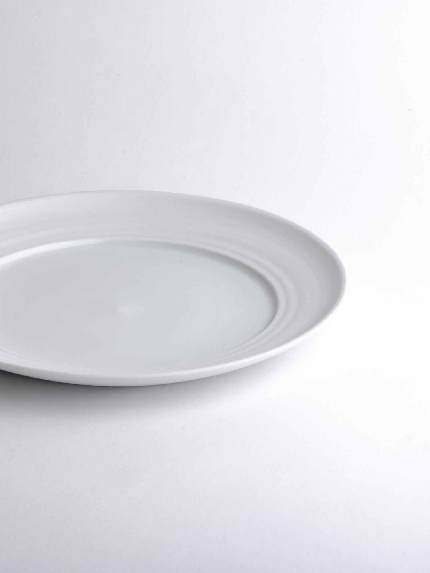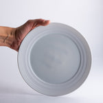 A breakfast or appetizer plate with a generous rim, its distinctive wheel-thrown grooves revealing the potter's wheel-making process. The glazed surface still offers ample space for everyday use. Ideally, every day.