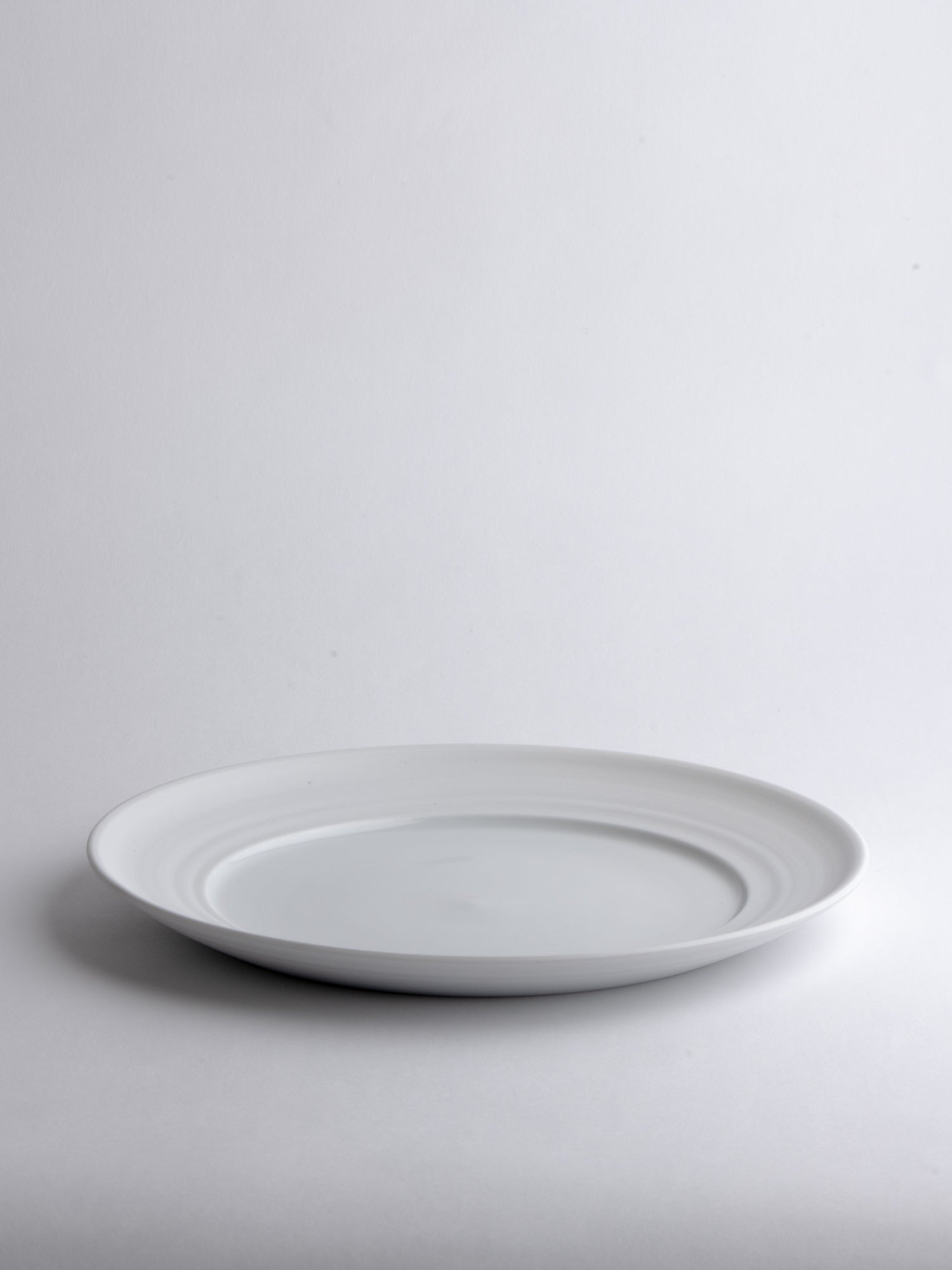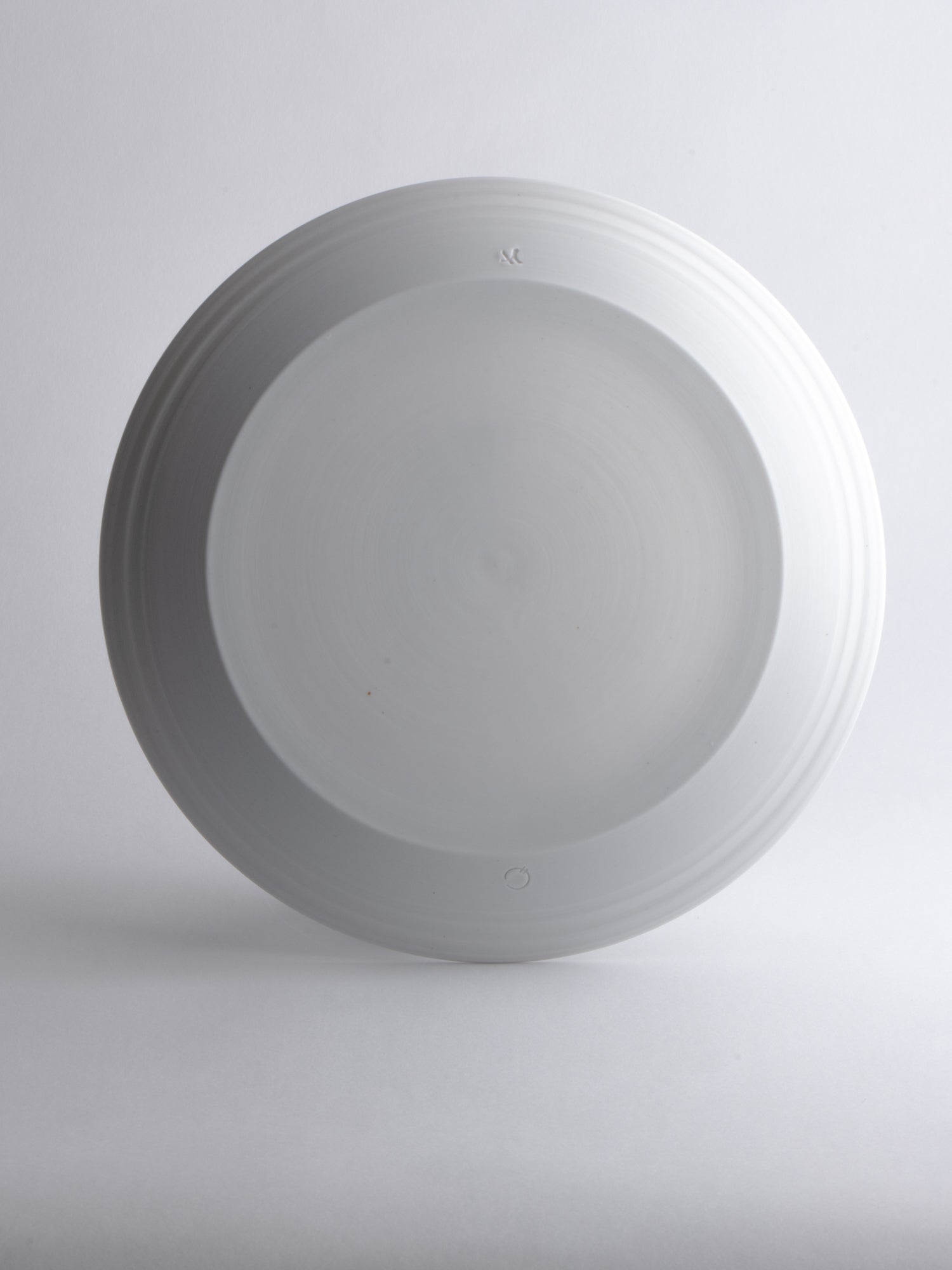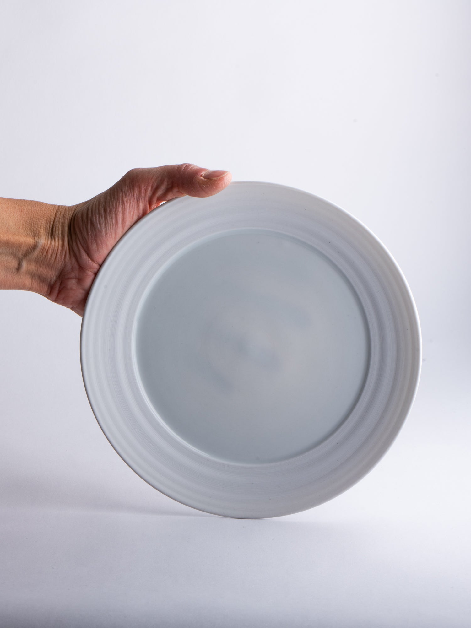 A breakfast or appetizer plate with a generous rim, its distinctive wheel-thrown grooves revealing the potter's wheel-making process. The glazed surface still offers ample space for everyday use. Ideally, every day.