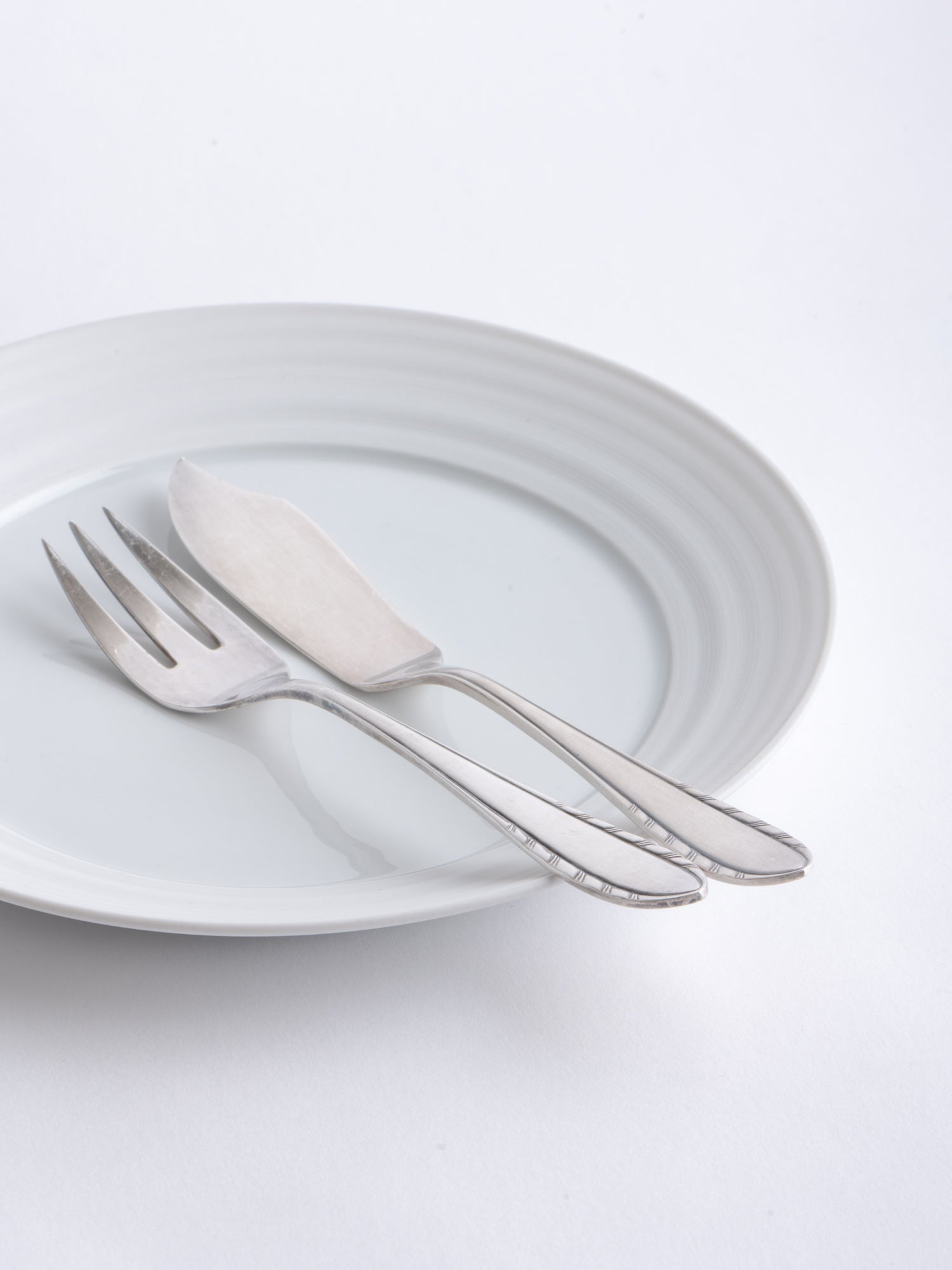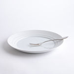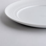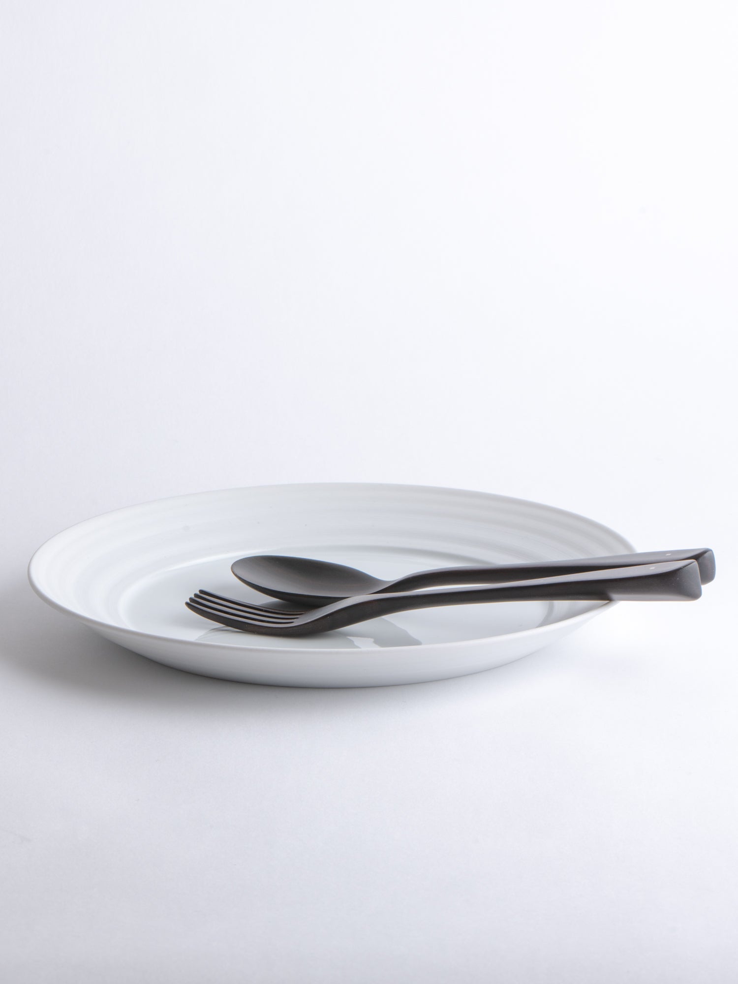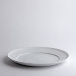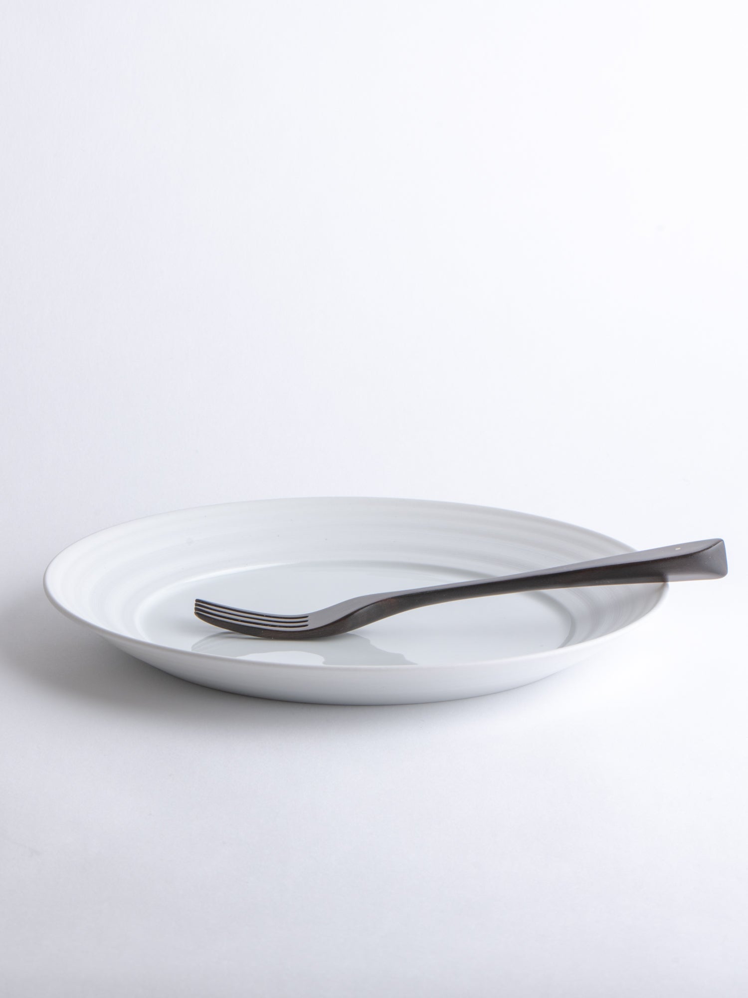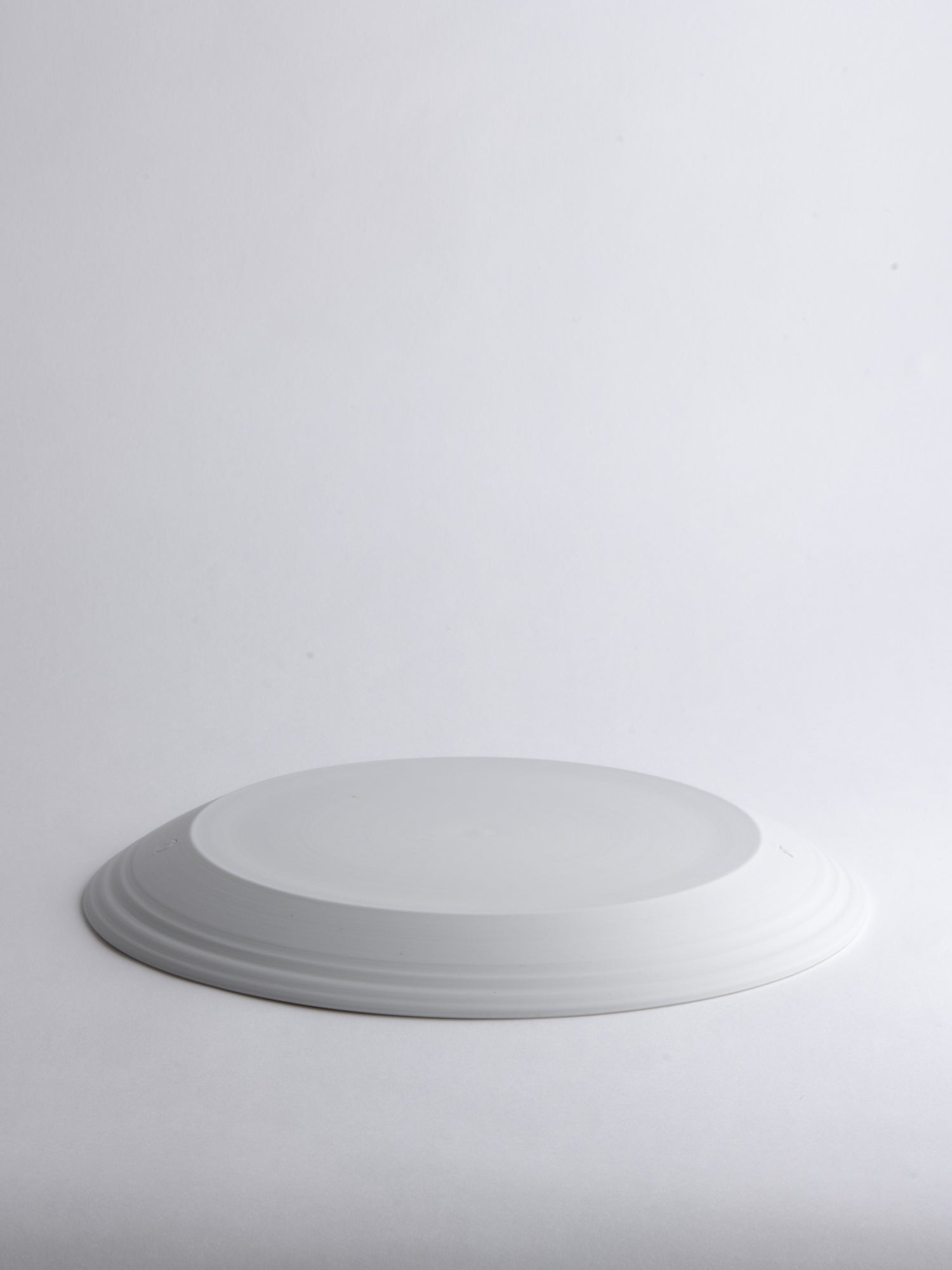 A breakfast or appetizer plate with a generous rim, its distinctive wheel-thrown grooves revealing the potter's wheel-making process. The glazed surface still offers ample space for everyday use. Ideally, every day.