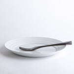 This plate is part of the collection designed for Atelier CAMINADA in collaboration with Andreas Caminada and Marcel Skibba, and is also available at the concept store in Schloss Schauenstein in Fürstenau, Graubünden. It undergoes a complex firing process in a gas kiln at 1,280 degrees Celsius, giving it its unique color and robustness.